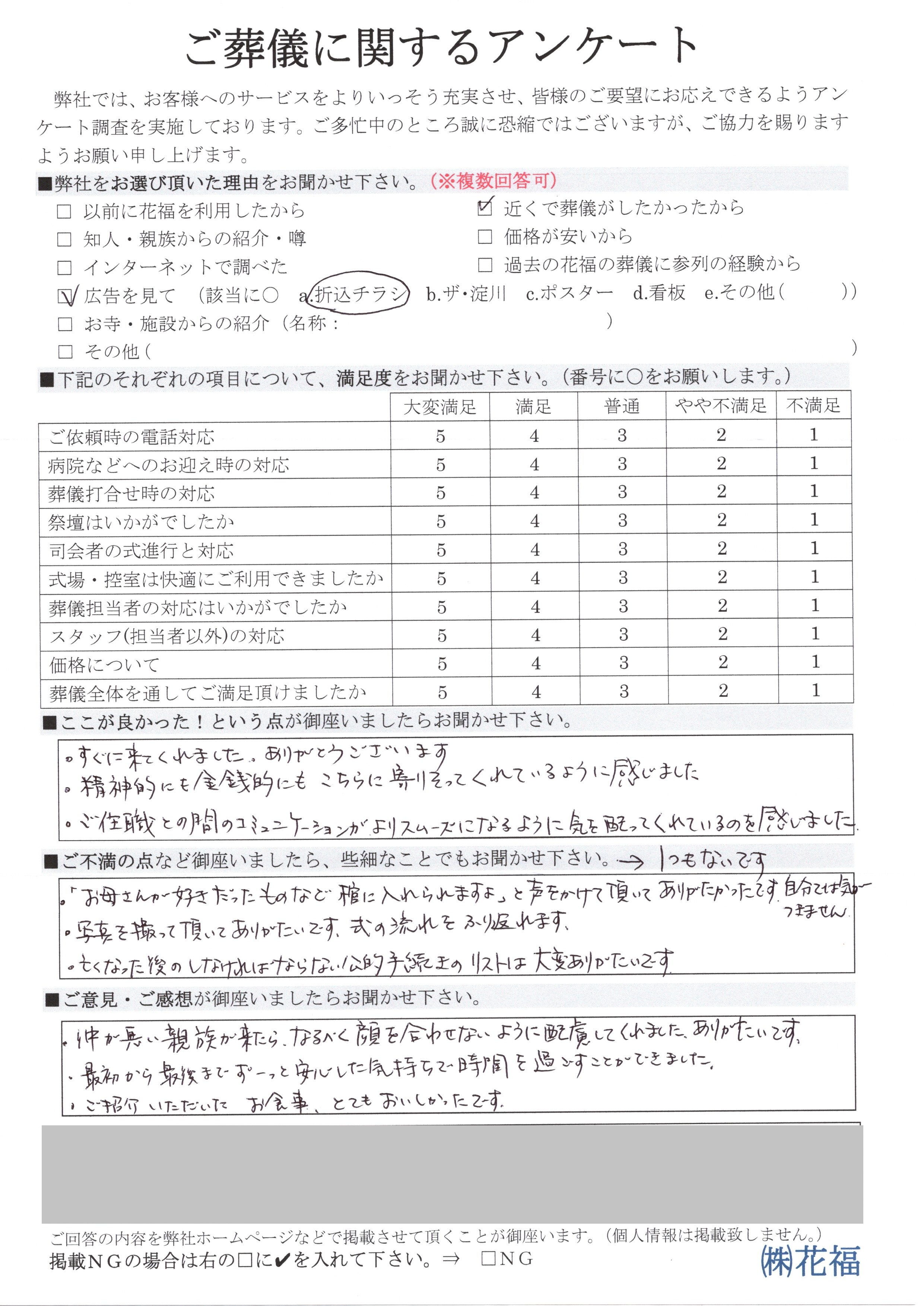 「お母さんが好きだったものなど棺に入れられますよ」と声をかけて頂いてありがたかったです。自分ではきがつきません。